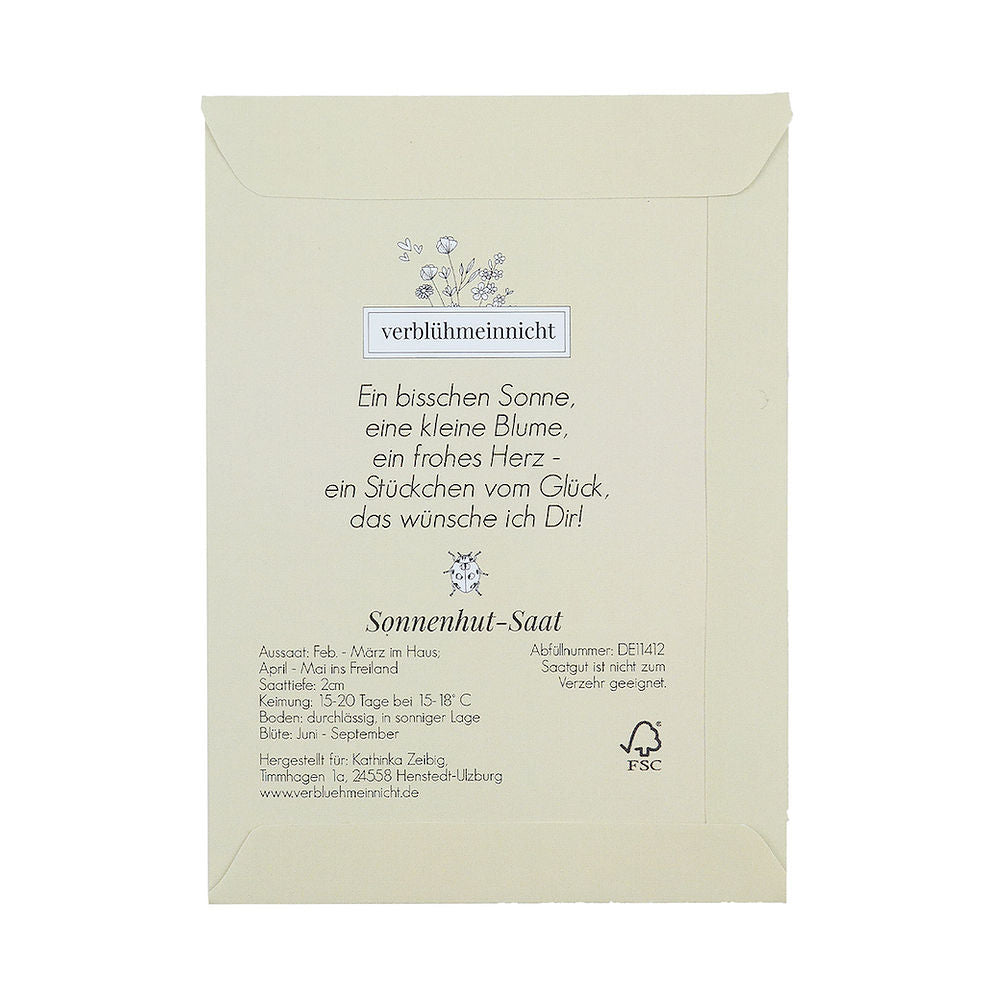 Wenn du die Blumensaat an deine Liebsten verschicken möchtest, empfiehlt sich ein kleiner mit Papier gepolstertert Umschlag oder ein flacher Mini-Karton. Ein normaler Briefumschlag empfiehlt sich nicht für den Versand, da durch die hohe Druckkraft der Pressen in der Post die Samen zerdrückt werden, das Papier beschädigt wird und die Samen ihre Keimfähigkeit verlieren.