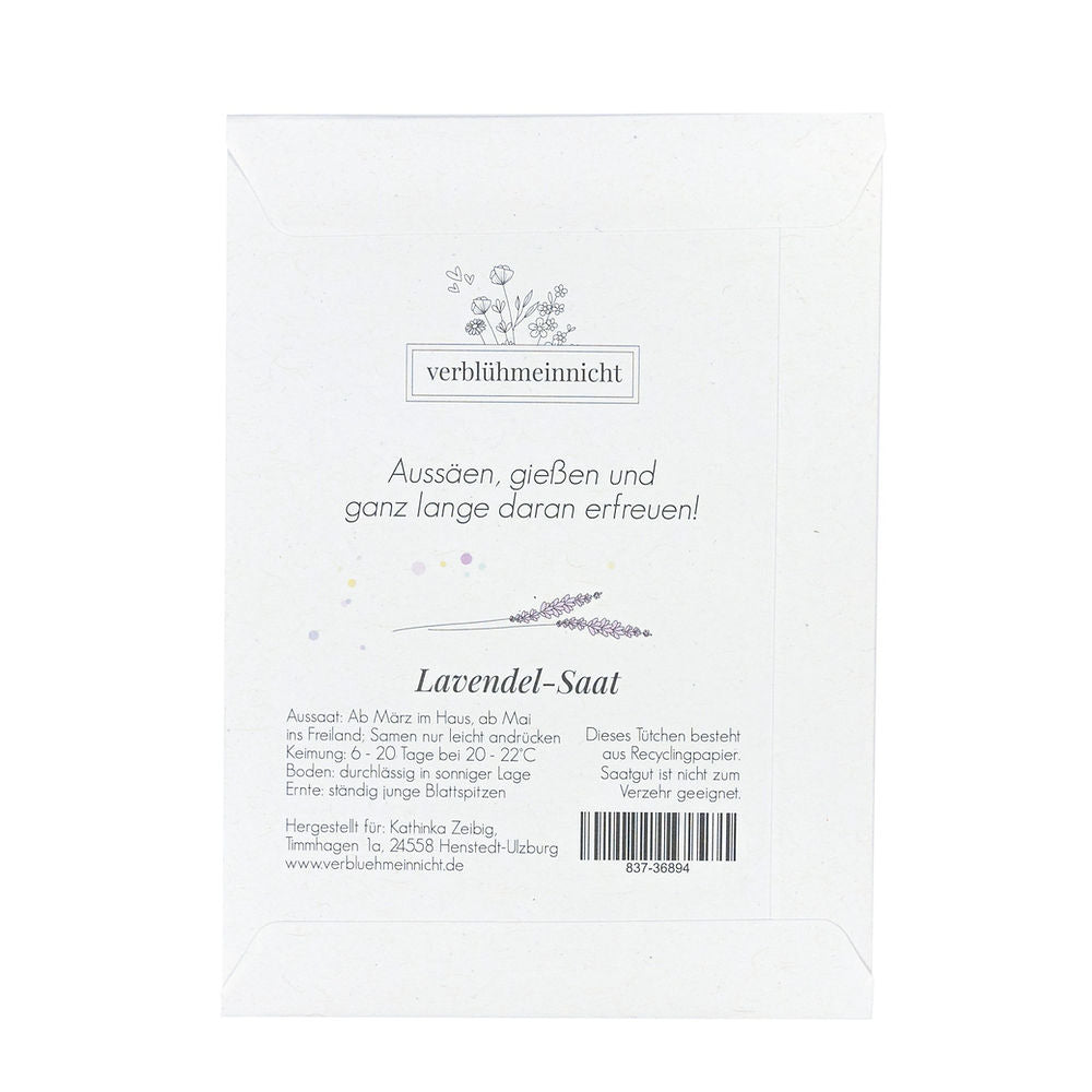 Wenn du die Blumensaat an deine Liebsten verschicken möchtest, empfiehlt sich ein kleiner mit Papier gepolstertert Umschlag oder ein flacher Mini-Karton. Ein normaler Briefumschlag empfiehlt sich nicht für den Versand, da durch die hohe Druckkraft der Pressen in der Post die Samen zerdrückt werden, das Papier beschädigt wird und die Samen ihre Keimfähigkeit verlieren.