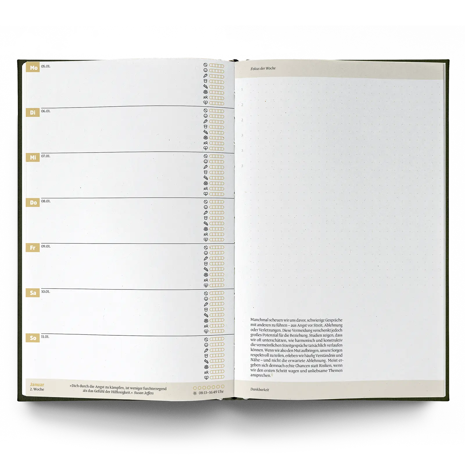 Der Bestseller, die Design-Ikone, das Original: Ein guter Plan ist ein ganzheitlicher Terminkalender für mehr Achtsamkeit und Selbstliebe. Frei von Kitsch, Klischees und Selbstoptimierung. Lerne dich kennen, behalte dein Stresslevel im Blick und hol dir die Kontrolle über dein Leben zurück.
