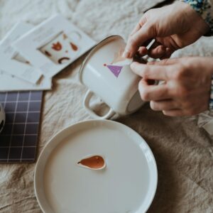 Zum Upcyceln von Keramik, Glas und Emaille. Ganz leicht im Ofen zuhause zu fixieren, ganz ohne „Aufkleber-Haptik“.