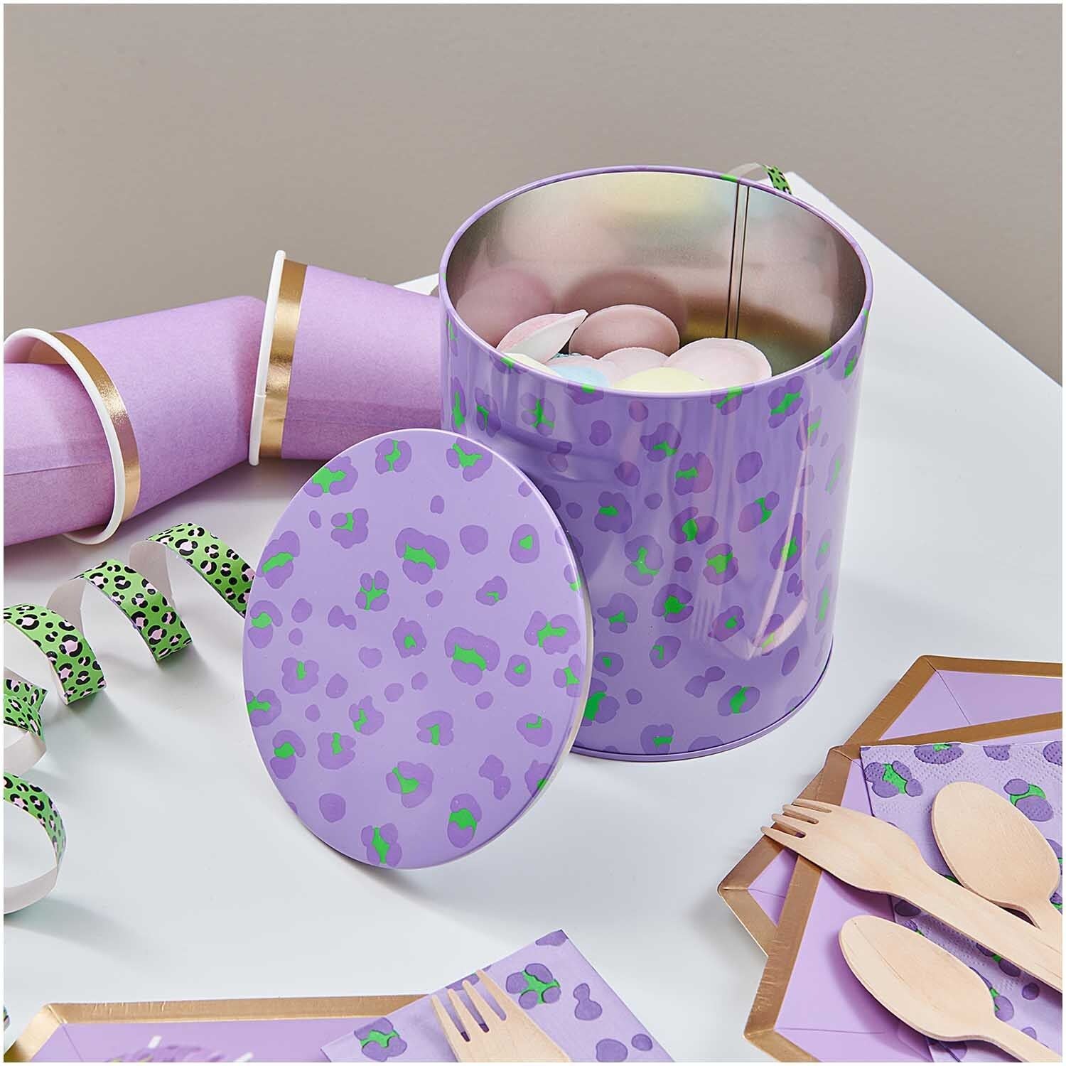 Was wäre das Leben ohne leckere Kekse? Zur Aufbewahrung der Leckereien eignet sich diese Keksdose mit trendigem Leopardenmuster. Die Dose hat einen Durchmesser von ca. 13,6 cm und eine Höhe von ca. 15 cm. Die Neon-Farbakzente sorgen für glänzende Highlights. Aufgrund ihrer Foodsafe-Qualität eignet sich die Dose perfekt zum Aufbewahren oder Verschenken von Keksen oder anderen Lebensmitteln. Sie kann aber auch ganz allgemein als Vorratsdose für diverse andere Dinge genutzt werden und ist ein echter Hingucker im Regal.