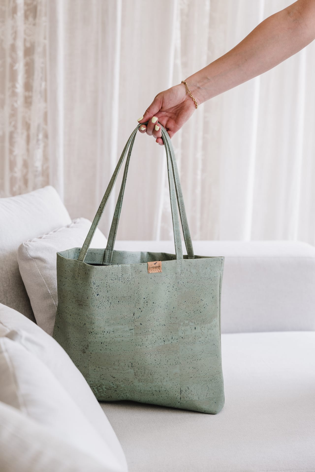 Durch das schlichte Design wird der Shopper Anna zu einem zeitlosen Begleiter im Alltag. Mit mehr als genug Platz für große und kleine Essentials ist sie die praktische und stylische Begleitung für unterschiedlichste Anlässe von Shopping bis Ausflug. Die stilvolle Tasche im schlichten Design ist mit einem Innenfach ausgestattet, in dem Schlüssel, Handy & Co immer griffbereit sind und wird mit einen unsichtbaren Magnet verschlossen. Durch die natürliche Struktur des Korkleders ist die Tote Bag nicht nur zeitlos schön, sondern auch leicht wie ein Fliegengewicht.