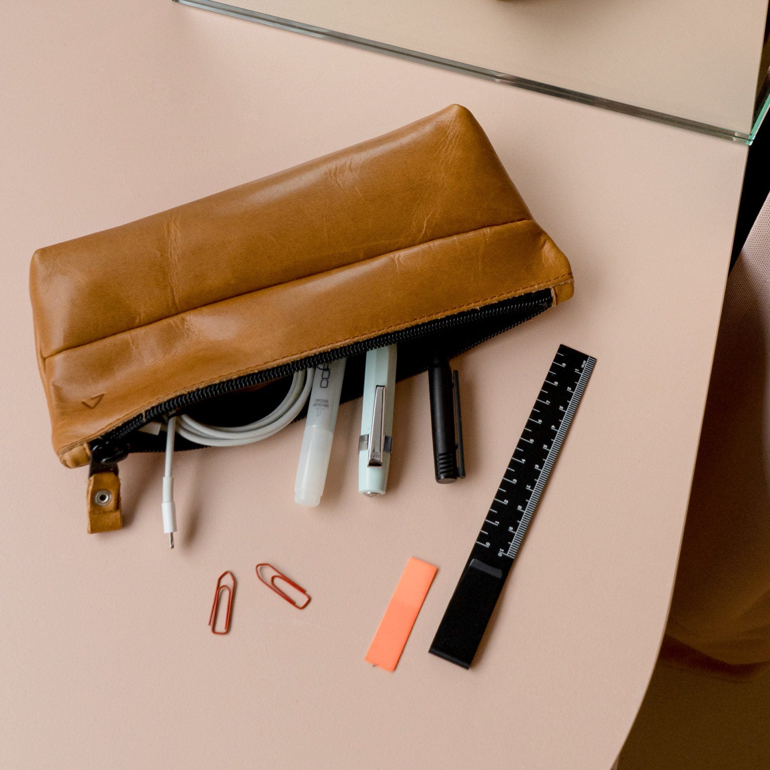 Unsere große Federmappe bietet Platz für jede Menge Stifte, Zubehör wie Radiergummi und Lineal sowie Ladekabel. Du kannst das Täschchen aber auch für Kosmetik und andere Dinge von Wichtigkeit nutzen. PEN Large ist dadurch ein perfekter Begleiter für den Arbeitsalltag und auf Reisen.